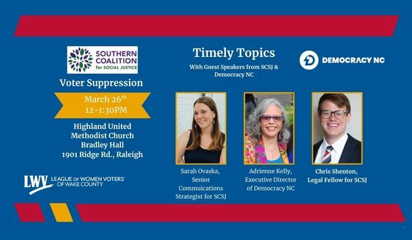 Come hear from the Southern Coalition for Social Justice and Democracy NC about what is being proposed and learn what we can do about it.