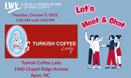 Welcome back to your exclusive, bi-weekly newsletter of the League of Women Voters of Wake County. If someone forwarded this to you and you'd like to become a member, or are interested in learning more, just click here.