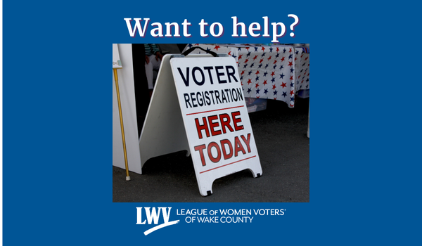 |  | | As a member or friend of the League of Women Voters, you've already shown your commitment to educating and empowering voters, thank you. If you are looking for a way to be even more involved, you are organized, and enjoy interacting with the public, we have meaningful work that might be a good fit for you! LWV-Wake has a tremendous voter services team who are active and willing to sign up and show out to activate citizens to register and vote. Due to some recent changes in leadership availability, we are in need of a couple of people to serve as Voter Services leaders who can organize and lead the work of existing teams. If the idea of informing, registering, and inspiring voters across our area sounds appealing to you, consider this opportunity to make a real difference working alongside others who share your commitment to democracy. Interested? Please contact LWV-Wake president, Gaye Williams, to discuss further. |  | | Our committees are open to all members and work across several key areas. Attending a meeting is a great way to see if you are interested in getting involved.